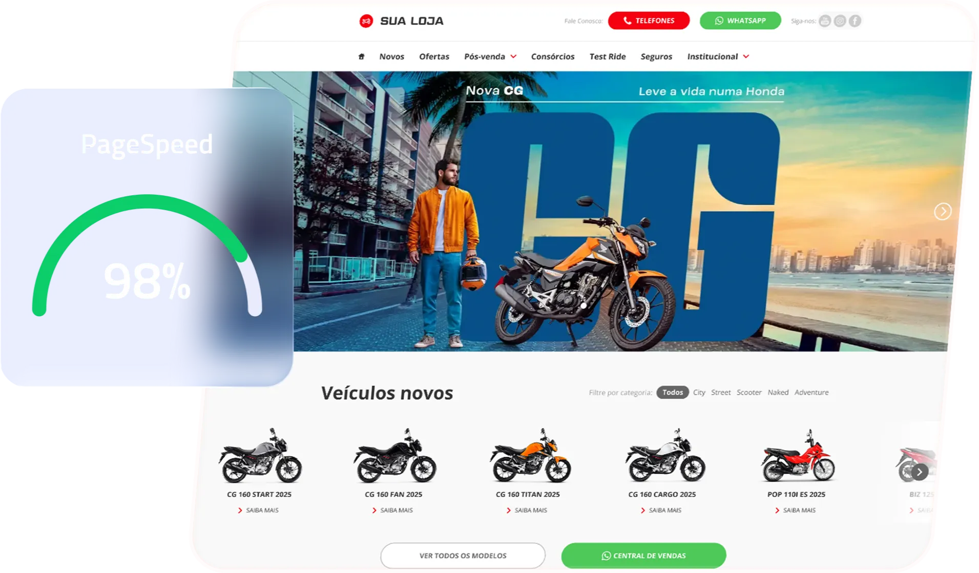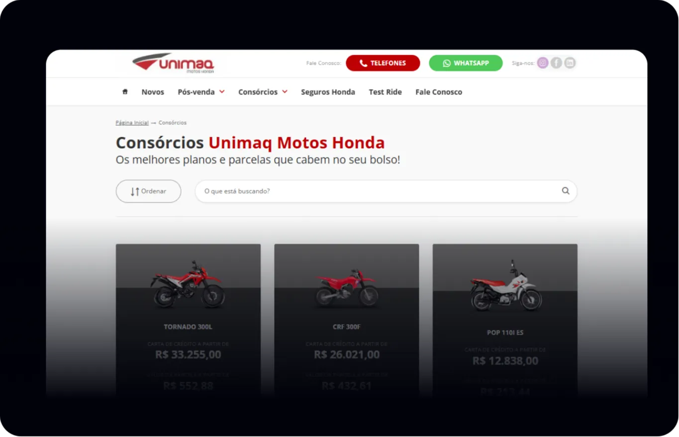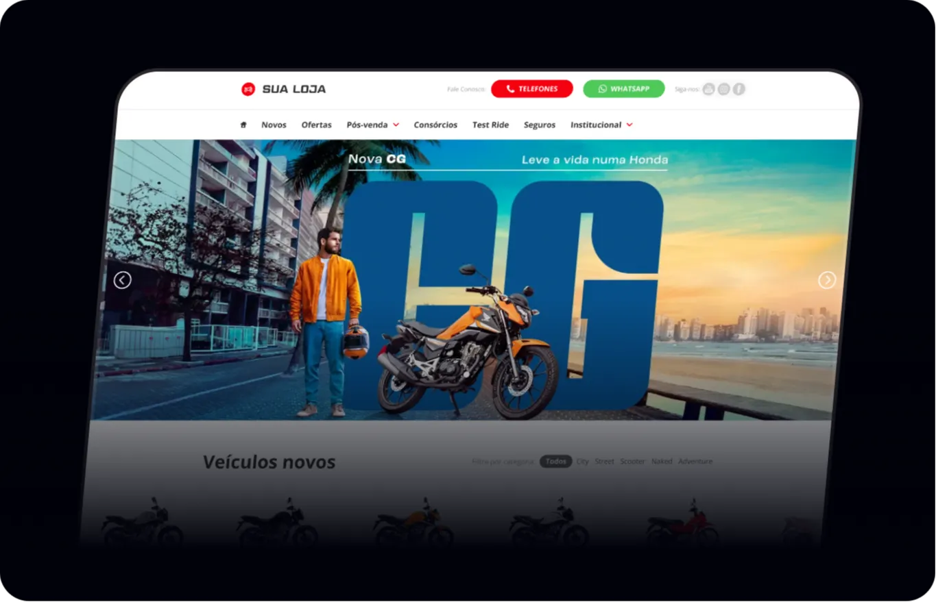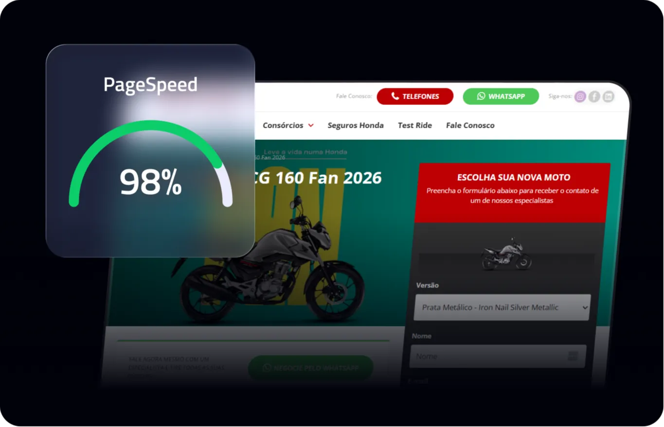Acelere as vendas das suas Motos Honda com construtor de páginas mais rápido do mercado automotivo!