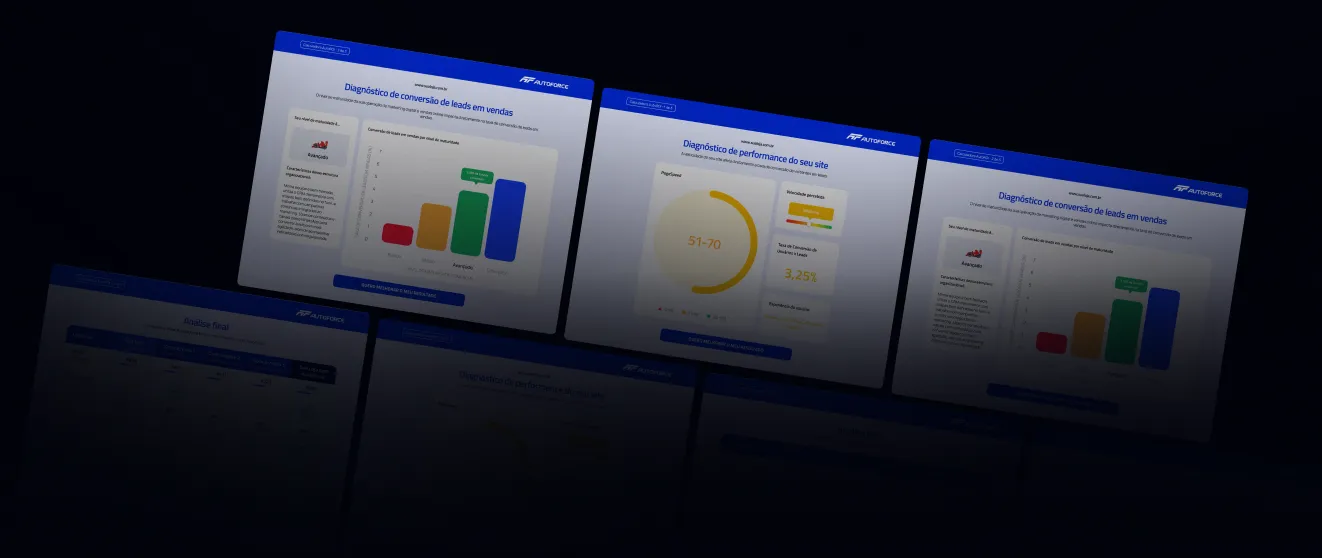 Com o Diagnóstico de Performance da AutoForce, você vai ter acesso imediato a uma análise cirúrgica do seu site e operação digital.